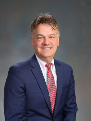 Headshot of a person with short, gray hair, wearing glasses, a black suit with a red tie, and a patterned pocket square, against a neutral background.Shacker Mourad